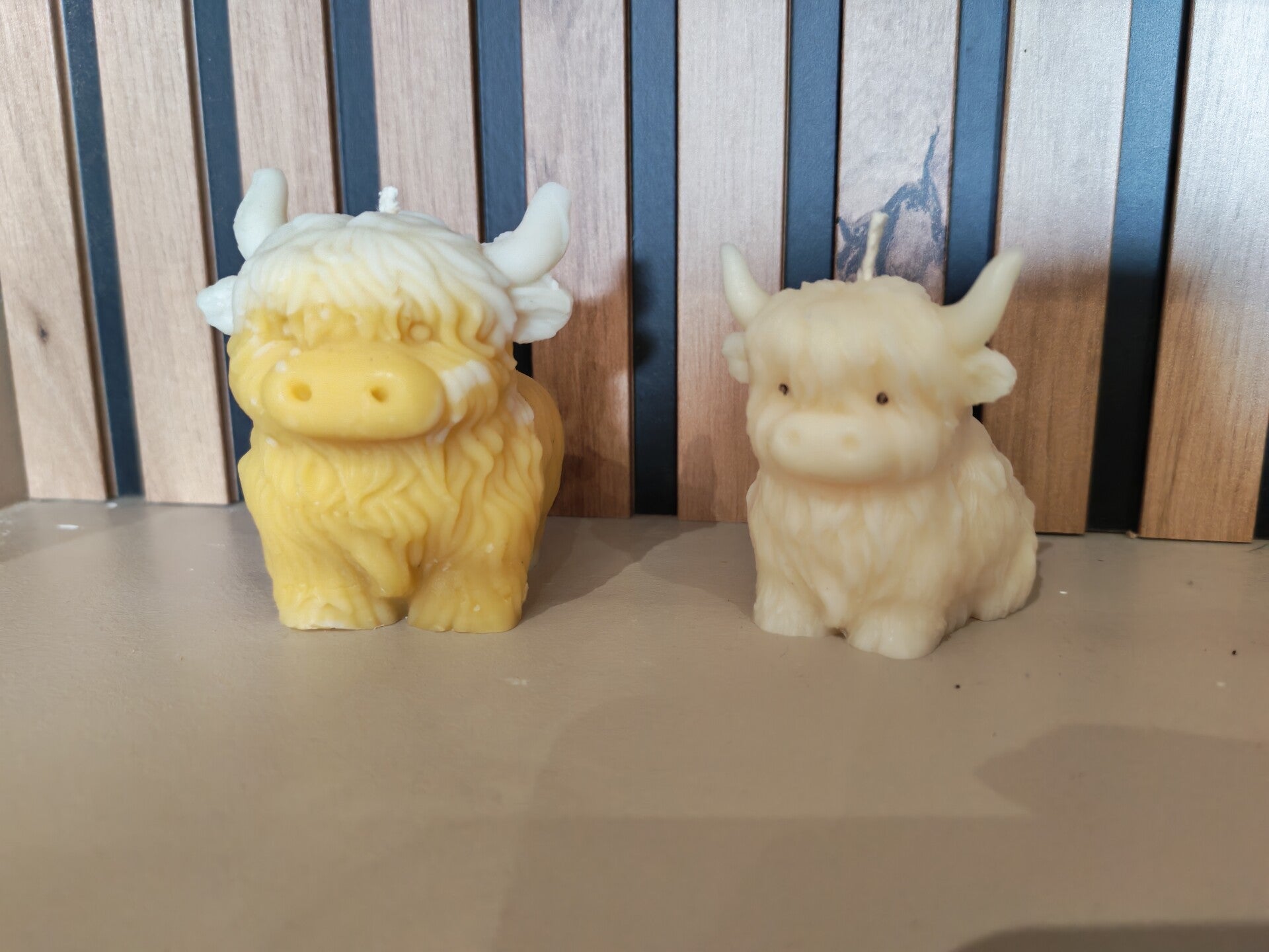 Des petites bougies moulées : 100% cire d'olive ou un mélange de cire d'olive et cire d'abeille (de Corrèze) pour une coloration naturelle . Pour faire honneur à cette belle région quoi de mieux que de la representer avec ses belles Vaches pour l'authenticité ou encore ces Cèpes "L'or Brun du Limousin"